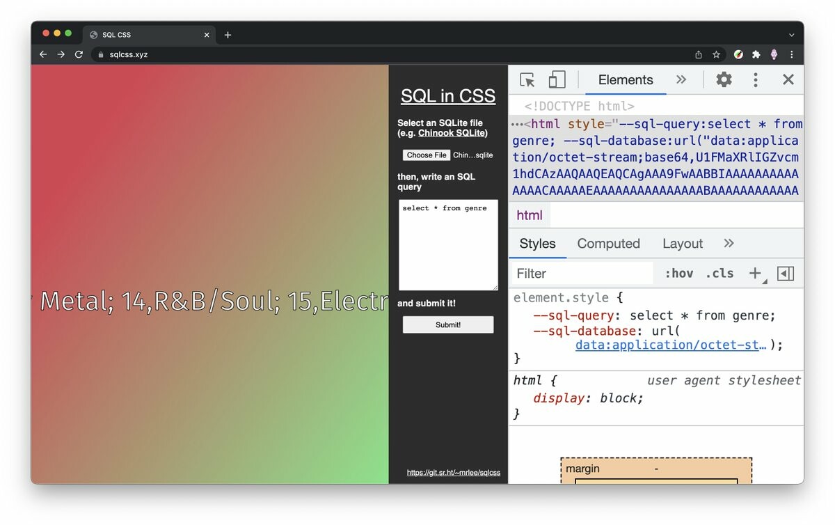 Some creative stuff! Read all about it here https://www.leemeichin.com/posts/yes-i-can-connect-to-a-db-in-css.html